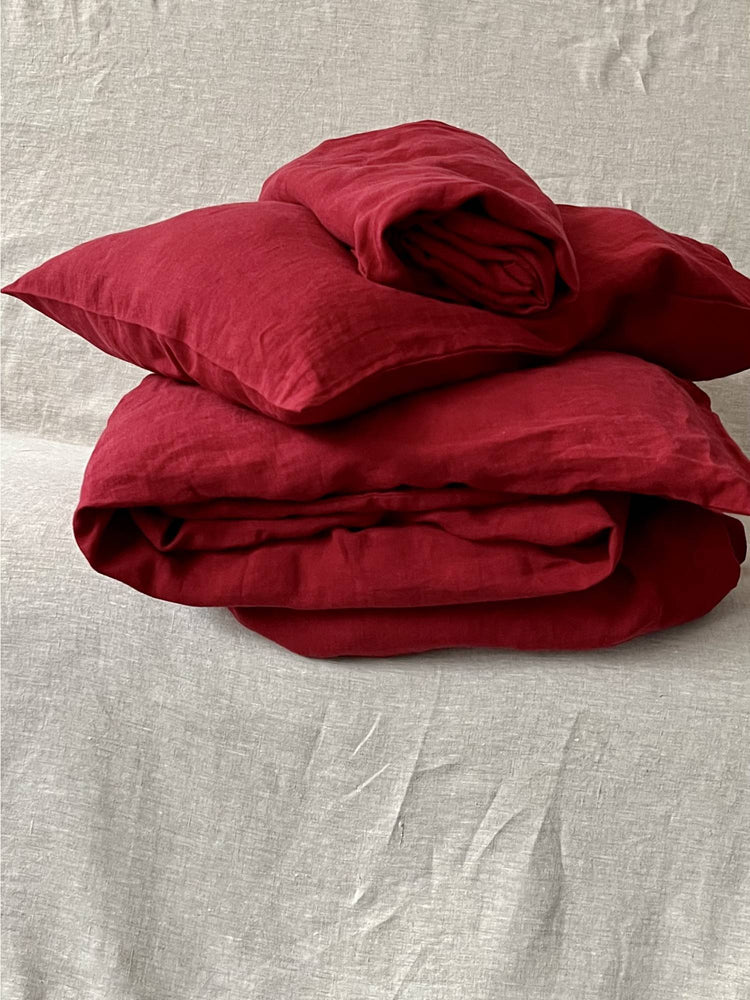 Karminrot-Leinenbettwäsche-Set