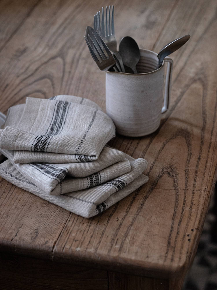 Stilvoll und praktisch. Das Leinen-Küchenhandtuch in natürlicher Leinenfarbe mit feinen Streifen ist eine stilvolle Ergänzung für jede Küche. Es vereint Eleganz und Funktionalität und bringt Natürlichkeit in den Alltag.