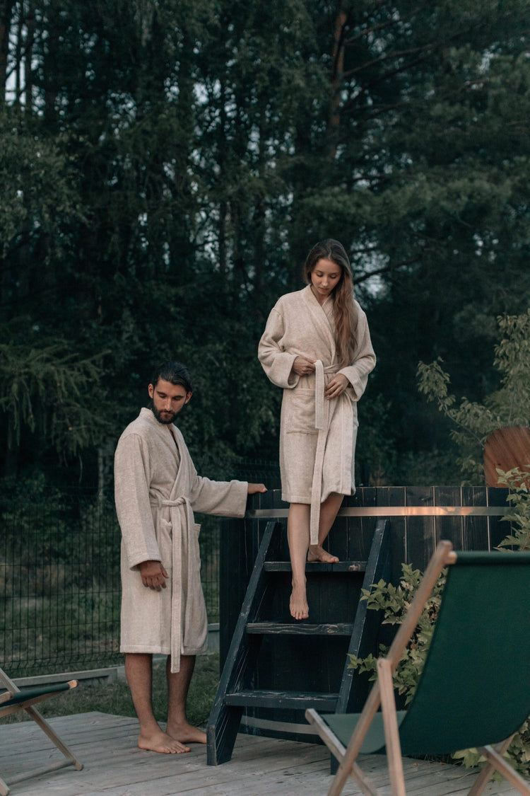Leinen-Frottee-Bademantel